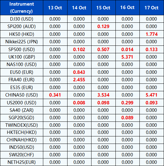 Please note the above data are subject to changes. Please refer to MT4/MT5 for details.