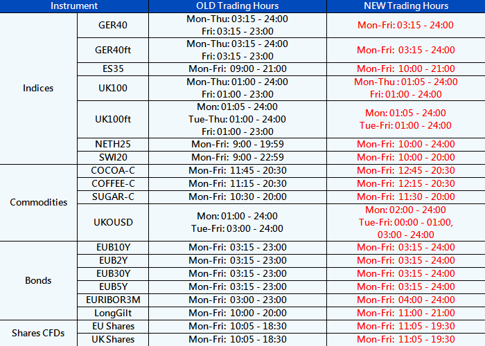 Trading Hours Schedule Changes for EU/UK Daylight Saving