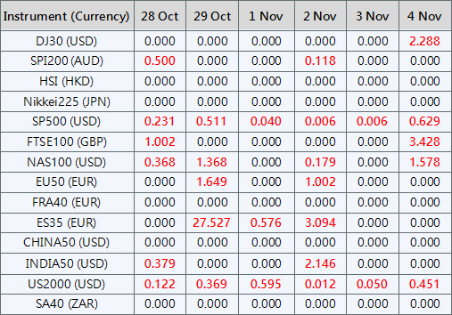 Please note the above data are subject to changes. Please refer to MT4/MT5 for details.