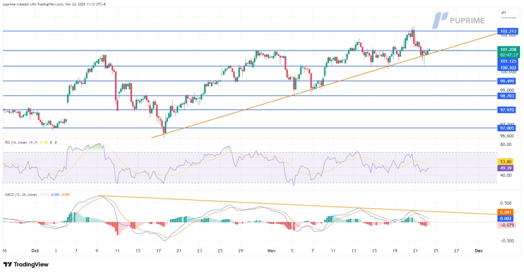 Momentum indicators present conflicting signals. The Relative Strength Index (RSI) remains above its 50 midline, suggesting bullish momentum persists, while the MACD shows signs of rolling over and potentially crossing below its zero line. This configuration indicates that while the broader trend remains technically intact, the bullish momentum is clearly deteriorating.