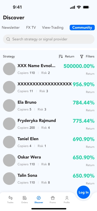 | View community posts, trade rationales, and strategy updates | Select a lead trader and set your allocation |