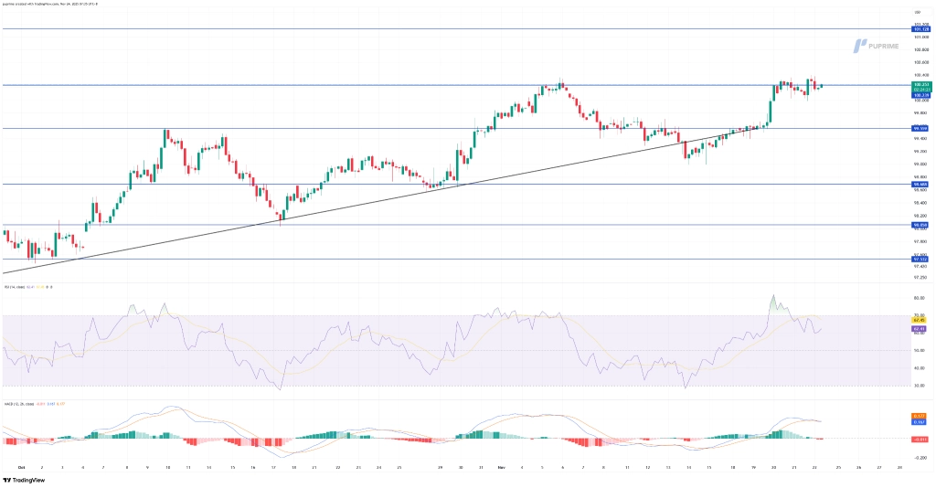 The U.S. Dollar Index (DXY) remains near multi-week highs as markets scale back expectations for a December rate cut to roughly 30–40%. Mixed U.S. labor data—including stronger-than-expected payrolls but modest wage growth—have created a nuanced backdrop, leaving investors cautious about the Federal Reserve’s next move. Hawkish Fed commentary warning against premature easing has kept short-term yields elevated, supporting the greenback against risk-sensitive currencies such as the yen and euro. Broader economic concerns, including ballooning U.S. public debt and fiscal sustainability, have reinforced the dollar’s safe-haven appeal, offsetting temporary swings from risk-on sentiment.