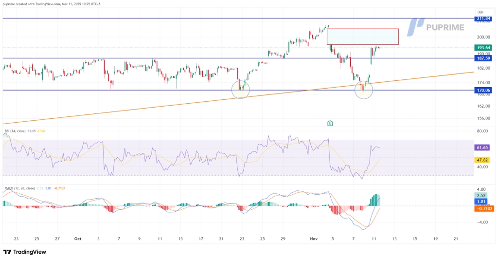Palantir (PLTR) is exhibiting a constructive technical setup following a pullback from its all-time high of $207.51. The stock has established a significant support base, forming a double-bottom pattern at the key $170.00 level—a classic reversal signal. The subsequent 14% rebound from this support confirms a near-term bullish trend reversal is underway.