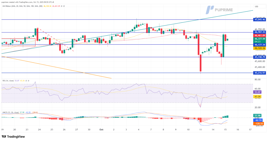 The Dow Jones Industrial Average staged a robust recovery in the last session, rallying nearly 800 points after finding strong support at the 45,740 level. This significant rebound has now propelled the index to challenge a key technical hurdle at the 46,600 resistance mark.