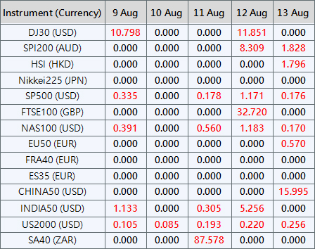 Please be advised that the dividends of the following index CFDs will be adjusted by upcoming ex-dividend dates. The comment for trading index CFDs will be in the following format “Div&<Product Name>&<Net Volume>” which show in the balance after the close of the day before the dividend payment date.
