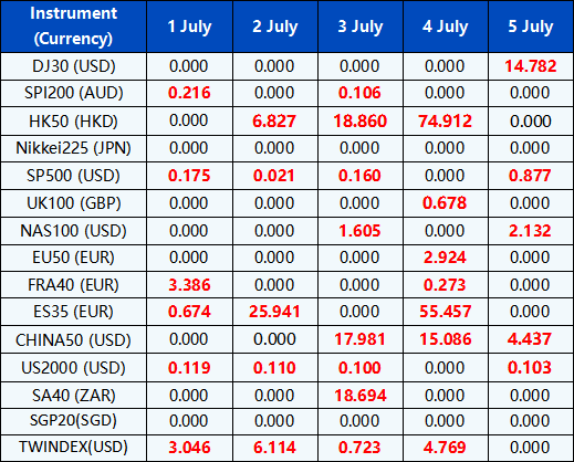 Please note the above data are subject to changes. Please refer to MT4/MT5 for details.