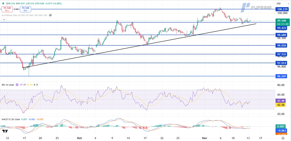 If the rebound continues, the index may retest resistance at 100.25, followed by 101.15. However, a decisive break below 99.45 would invalidate the rebound outlook and open the door toward 98.70.